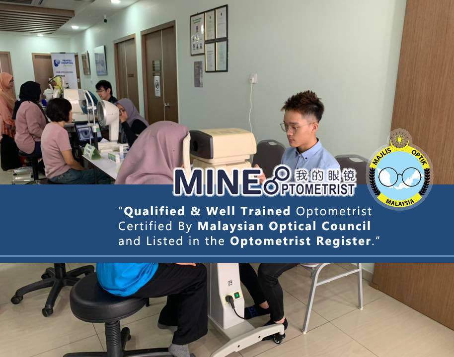 MINE OPTOMETRIST CENTRE(我的眼镜) has been established for more than 15 over years located in the central of Batu Pahat. Our new location is at Jalan Sultanah. We Are Qualified & Well Trained Optometrist Which Is Certified By Malaysian Optical Council and Listed in the Optometrist Register.